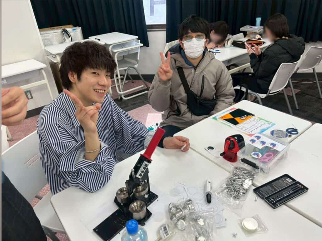 世界に一つだけの缶バッヂが完成し、参加者同士で見せ合って盛り上がりました。