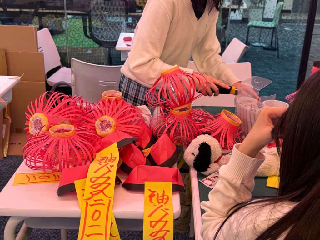 特にマンガ・イラスト専攻や映像クリエイト専攻の生徒は内装のデザインから装飾品、小物の作成など多岐にわたって活躍しています。