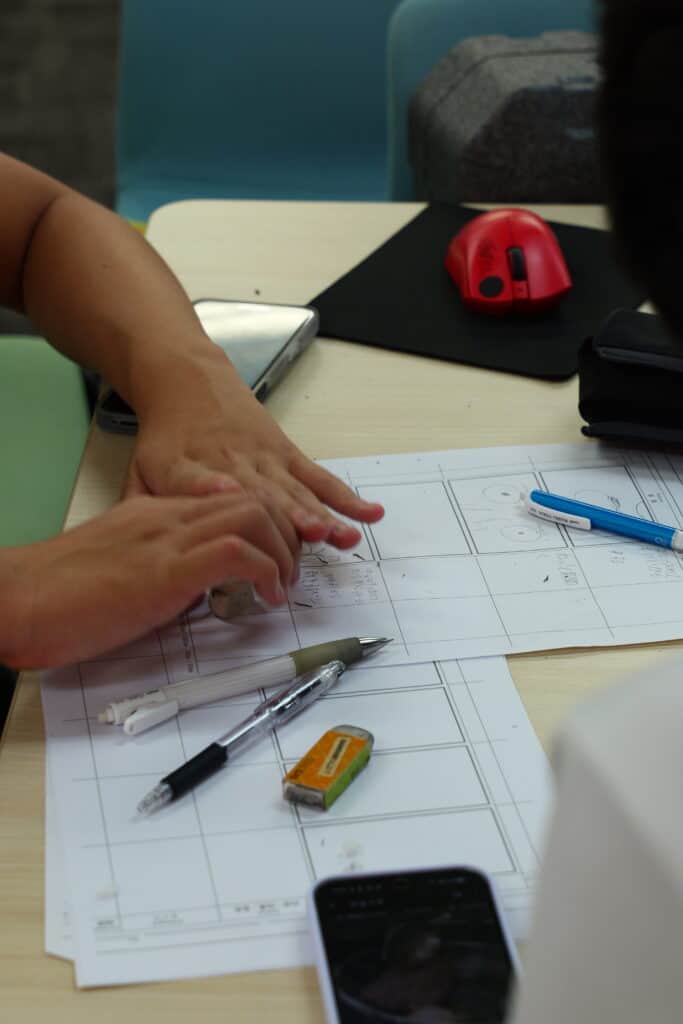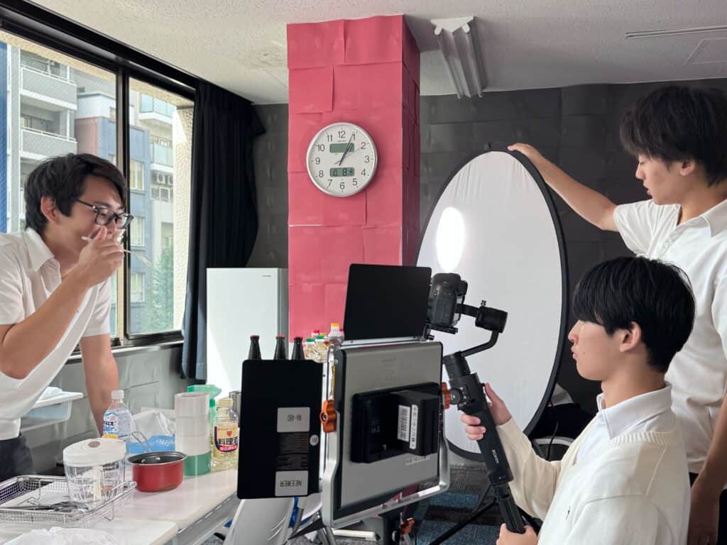 映像クリエイト専攻の生徒は絵コンテを作成し、撮影用のサンプル作成、ライトチェックなど、ドラマの撮影かと思うような作業をしておりました。