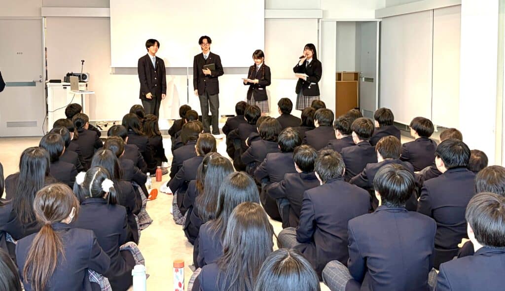 教務や生活指導について、進路や留学のことをじっくり確認をして、自分で自分の高校生活を組み立てていきます。また、2・3年生から1年生に向けた部活動紹介では、作品を披露したり、ボイパを披露したり、楽しい活動紹介をしてくれました😊
