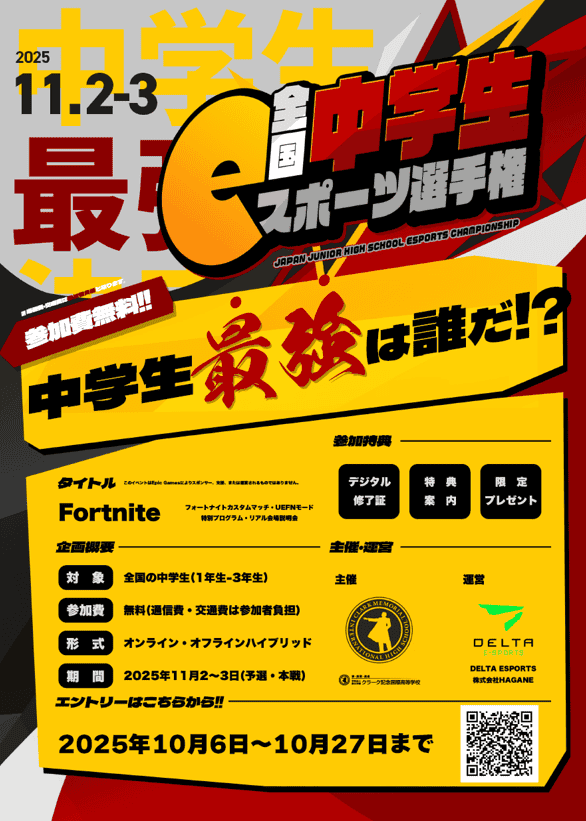 今回は中学生向けe-スポーツ大会のご案内をさせていただきます。