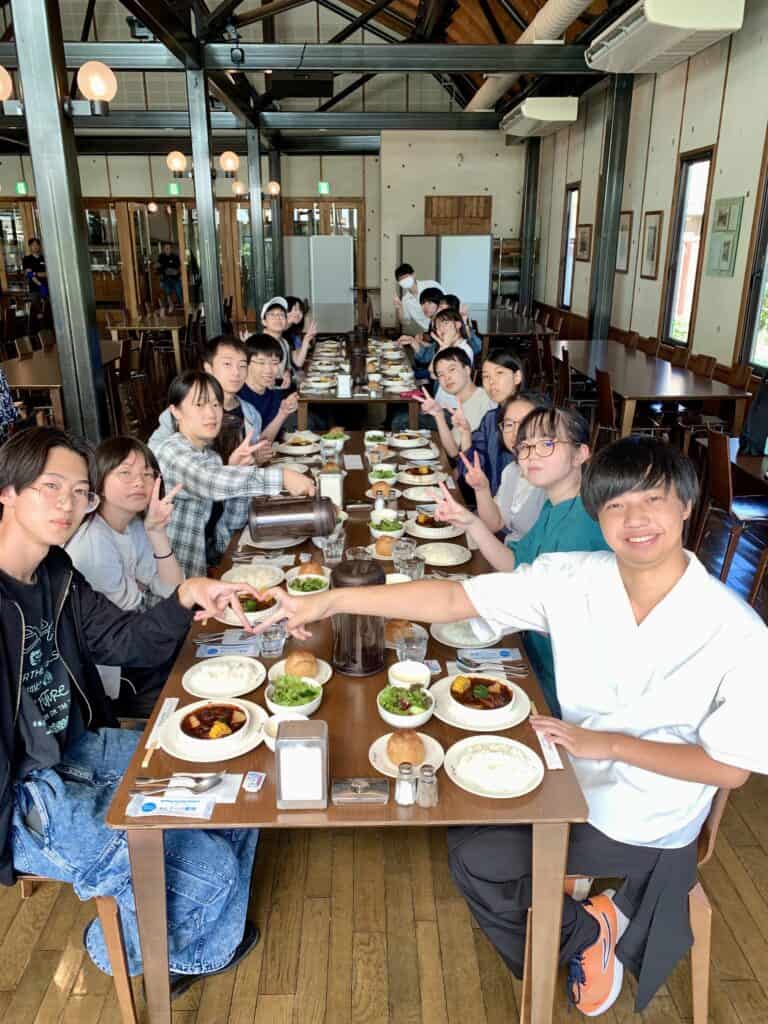北海道到着後はノーザンホースパークにて昼食、観光をしました!馬と記念写真を撮って北海道体験学習の始まりを体感しながら、宿泊施設「北の大地 元気の泉キャンパス」に到着しました。