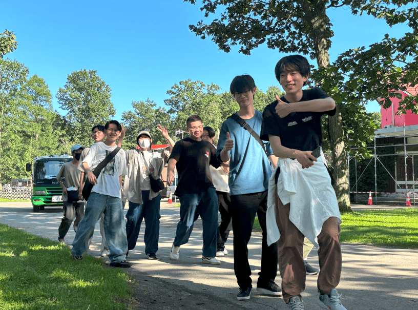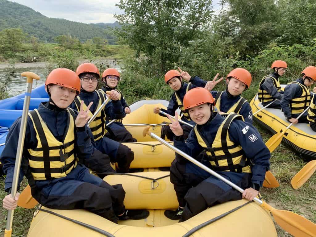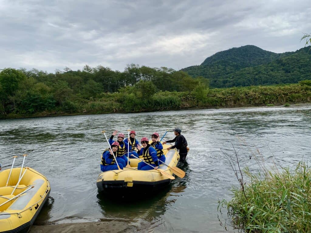 2日目は北海道ならではのアクティビティであるラフティングを体験しました。現地のインストラクターの方と一緒にドライスーツに着替え、ボートの漕ぎ方などを教えていただきました。夏の北海道の自然を楽しむことができました。