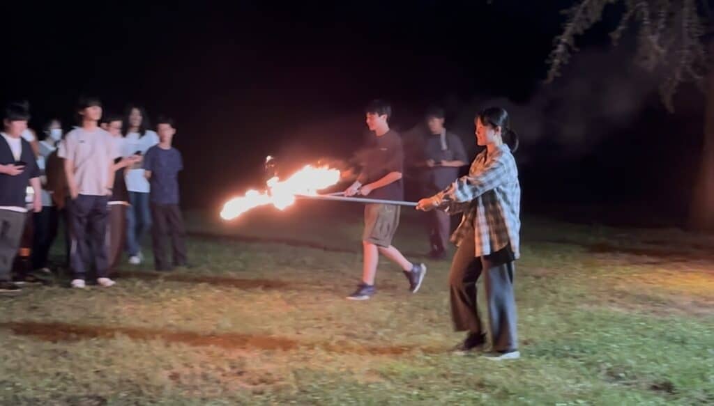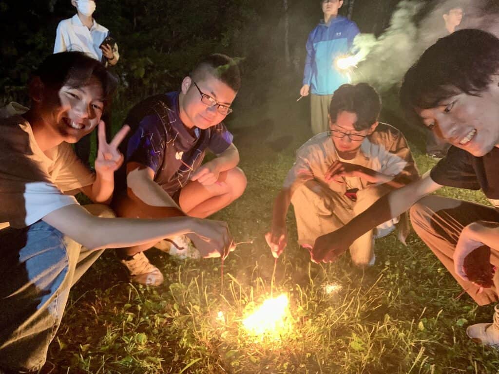 夜にはキャンプファイヤーや花火も行いました。宮城ではなかなかできないため花火に大盛り上がり、広大な敷地をもつ元気の泉キャンパスだからこその体験を生徒たちは満喫しました。