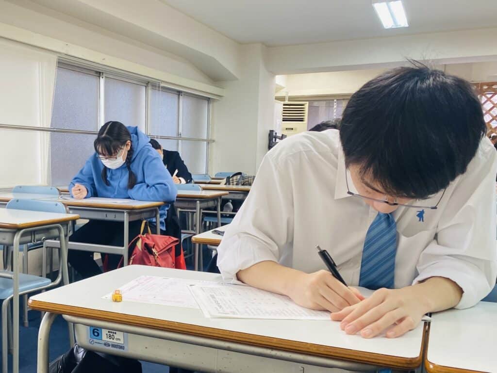 クラーク国際仙台キャンパスでは年に3回、校内受験を実施しています。この日は約20名の生徒が漢字検定に挑み、来年の進路を見据えた2年生の生徒が多く受験しました。漢字検定は社会的に評価されており、進学や就職の際にも役に立つため教育や企業で現場でも注目を集めています。今年度最後の漢字検定ということもあり、時間を余すことなくギリギリまで問題と向き合っていました。