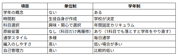 単位制は自由度が高く、自分のペースで学べる一方、自己管理の難しさや生活リズムの乱れなどの課題もあります。