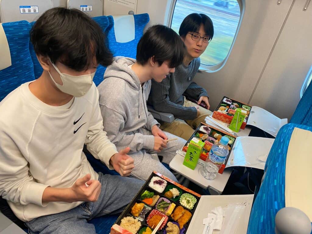これから始まる研修旅行への期待を話しながら、笑顔でお弁当を囲む様子が印象的でした(この記事下に、新幹線内でお弁当を食べている写真も掲載しています)。