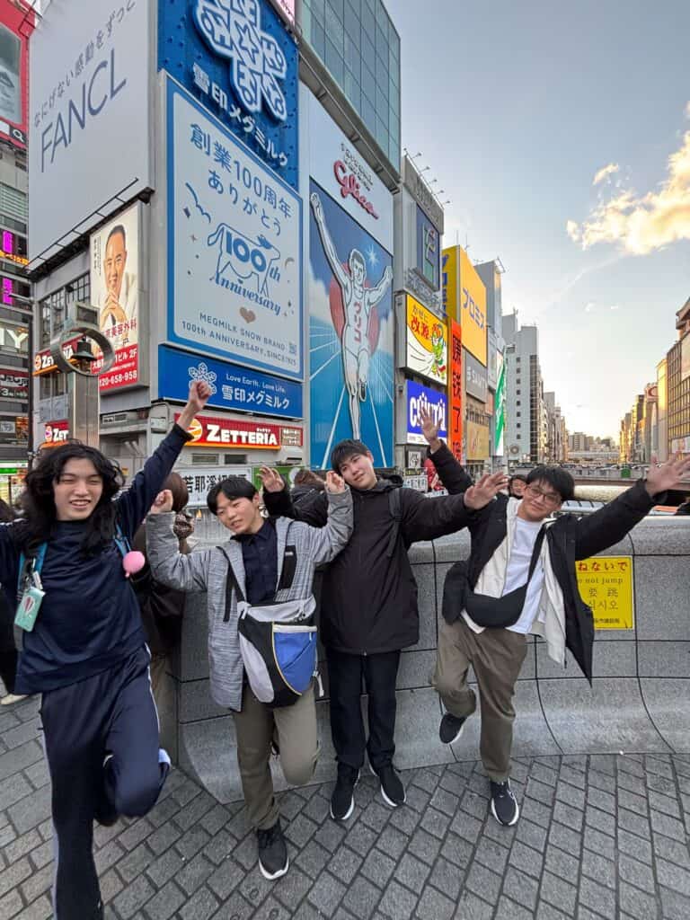 その後は大阪市内観光へ出発し、班ごとに事前に計画したコースに沿って名所を巡り、チェックポイントでの写真撮影も行いました。
