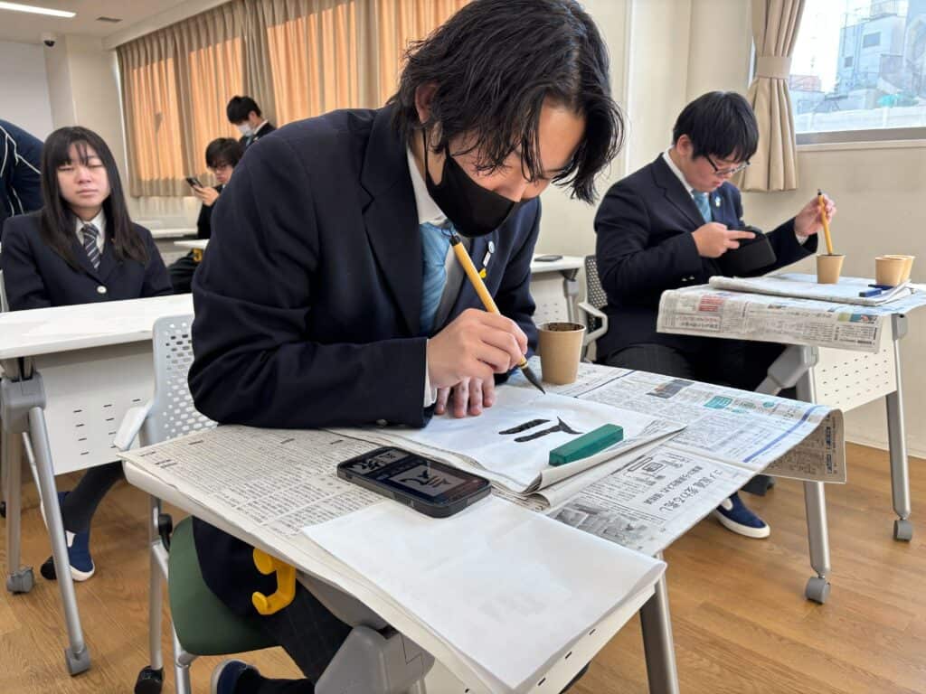 「最強」「無双」といった勢いのある言葉を書く生徒もいて、“らしさ”あふれる書き初めとなりました。