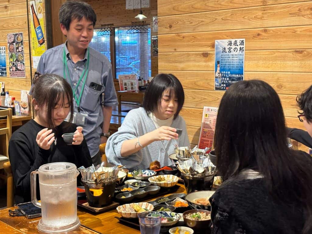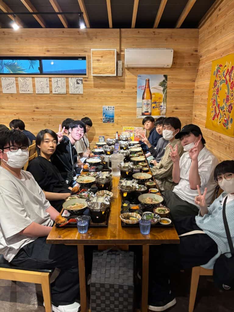 たくさん体を動かした後、夜は沖縄料理を満喫。沖縄ならではの食文化にも触れながら、笑顔あふれる夕食の時間となりました。旅先ならではの料理を囲みながら、その日の出来事を語り合う姿からも、充実した一日だったことが伝わってきました。