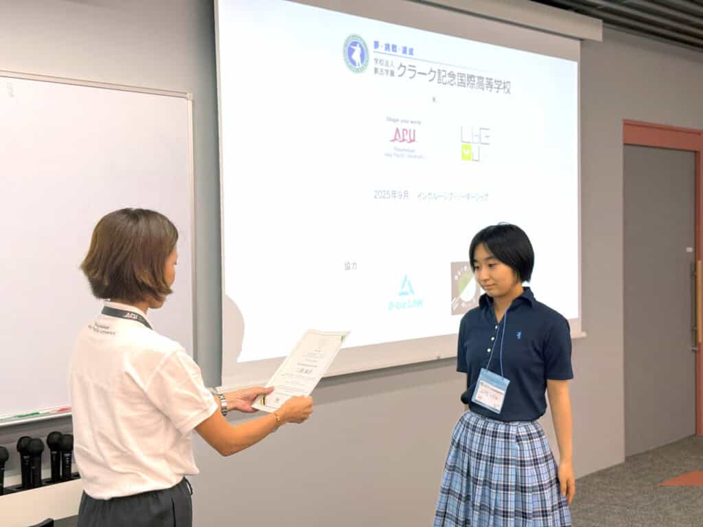 また、APUの留学生や日本人学生がメンターとしてチームに加わり、多文化的な視点を取り入れた協働学習が展開されました。異文化コミュニケーション、アイデア創出、プレゼンテーションなど、グローバル社会で求められる実践的スキルを磨く、かけがえのない学びの時間となりました。